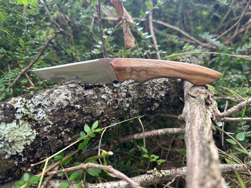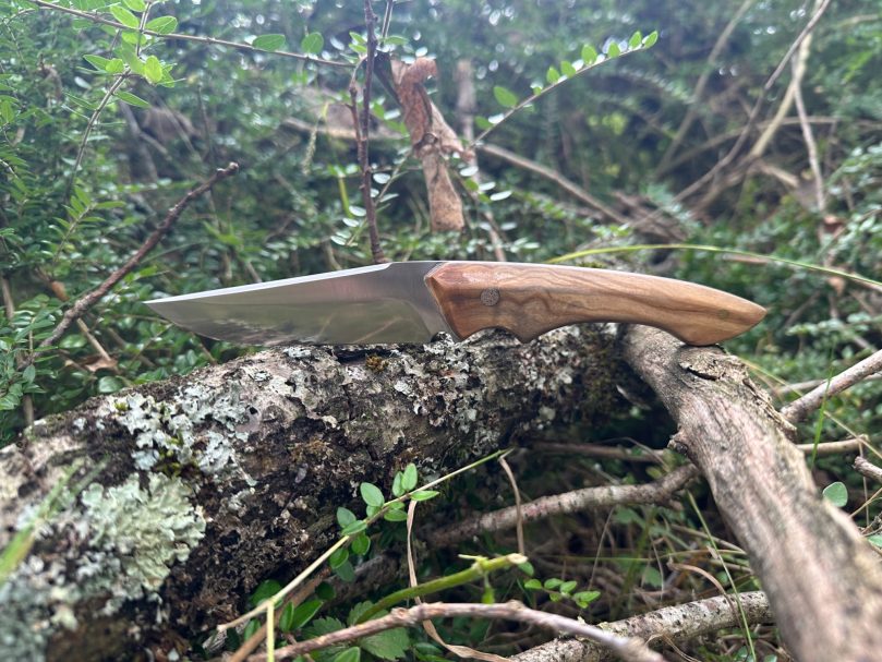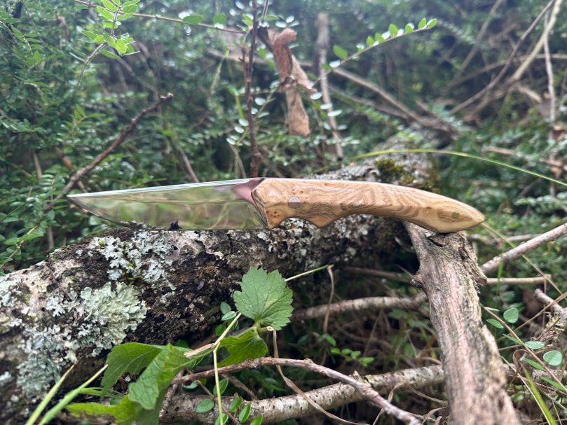 La lame est en XC75 et le manche en olivier naturel.