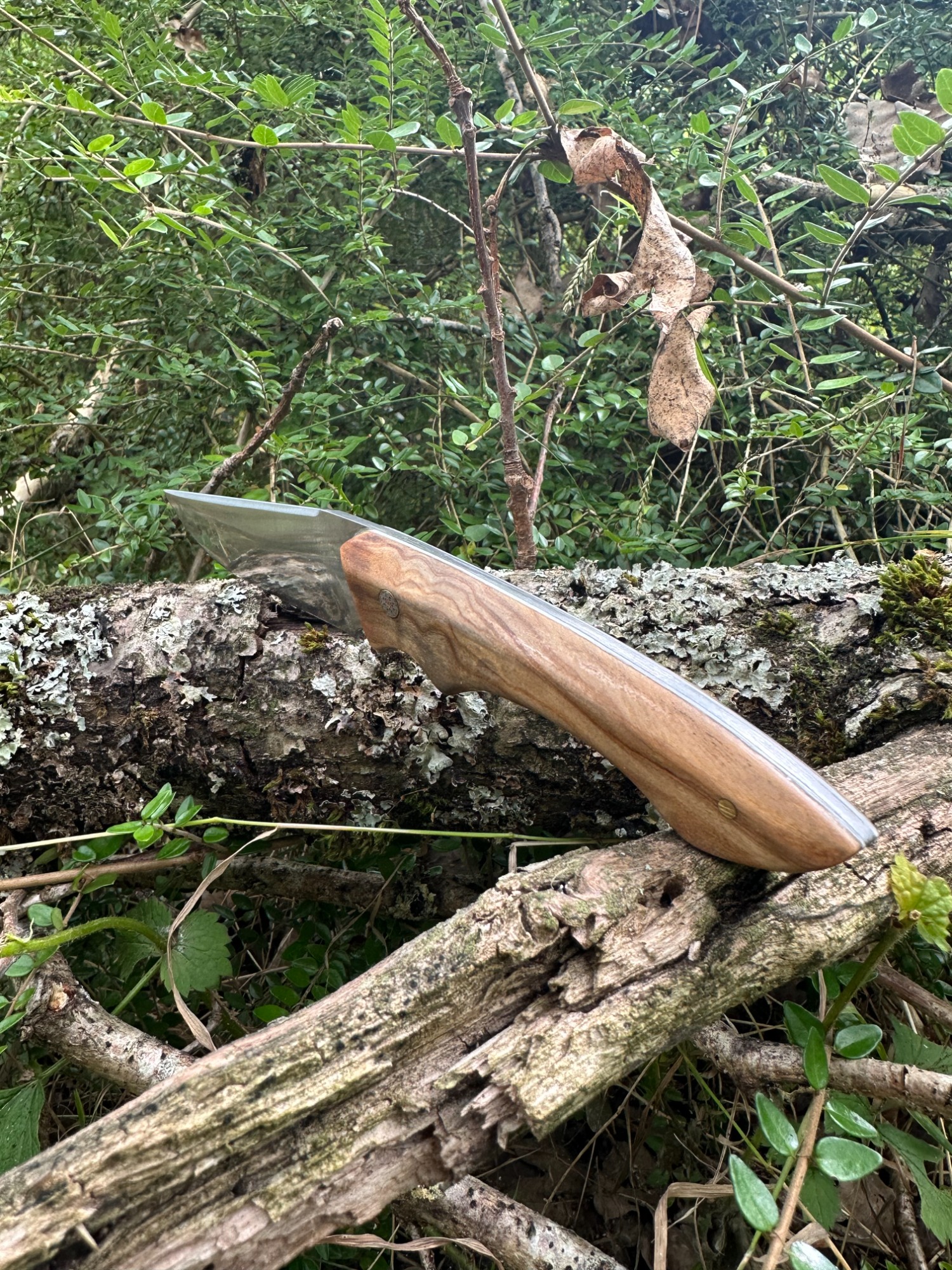 La lame est en XC75 et le manche en olivier naturel.